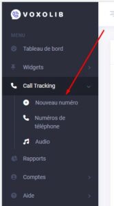 Une fois authentifié, sélectionnez le menu Call Tracking dans la barre latérale gauche et cliquez sur « Nouveau numéro ».