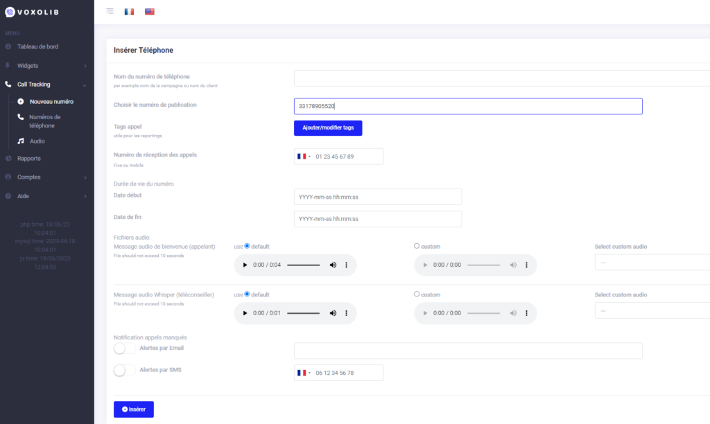 Pour ajouter un nouveau numéro Call tracking il vous suffit de suivre les instructions suivantes: